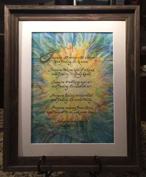 Feel free to call with any questions that you might have about hand scribing your biblical piece at 716-913-4215 or email me at joan@handscribedcalligraphy.com